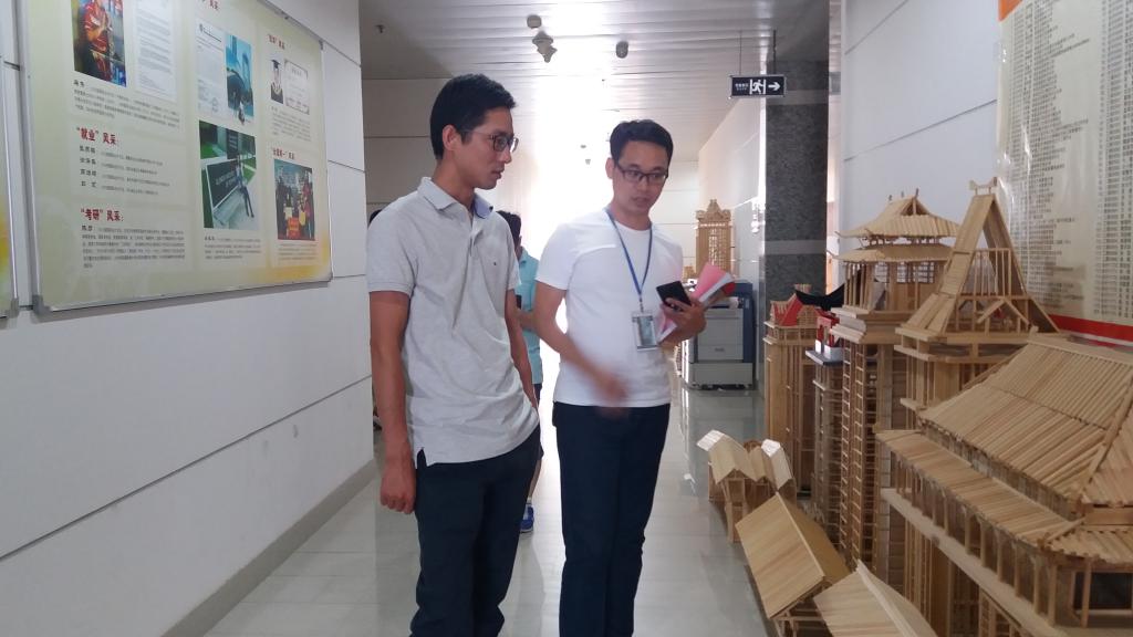 座谈会后,阮高祥一行参观了工程管理专业学生的模型作品,高度赞赏了诚毅学院对学生实践能力的培养。