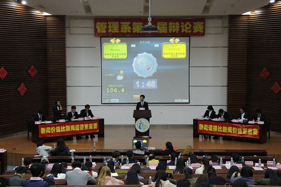 11月26日,由be365官方团总支学生会主办、be365官方学团总支生会学习部承办的be365官方第十届辩论赛总决赛在景祺楼104举行。此次比赛特邀英语教研室陈美贤老师担任评委老师,并由各系学员组成评委团,学生会干事及辩论队亲友团出席观看了本次比赛。